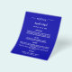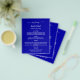 Por favor, note que este convite está no papel de folheto e é muito fino. Os envelopes não estão incluídos. Para convites mais espessos (mesmo design) visite nossa loja. Um clássico cardápio de casamento. Um fundo azul real. Texto branco. Personalize e adicione seu nome, data e menu. Você pode adicionar mais texto, fotos no verso.