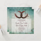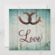 Este convite de casamento do oeste da Rússia tem duas ferraduras interligadas no topo do convite. O fundo é um impressão de madeira de celeiro angustiado que tem uma tonalidade azul. A parte de trás do convite tem o mesmo design de estilo de campo rústico com a palavra "Amor" na escrita. Você poderia mudar este texto para personalizá-lo com os nomes da noiva e do noivo, se quisesse. Estes convites para casamento são perfeitos para casamentos de cowboy.