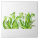 Este azulejo cerâmico tem uma pintura chamada 'Hosta with the Mosta' por mim. Apresenta a folhagem deliciosa de Hosta no início da primavera, que se rompe com a fecundidade desta estação através de múltiplas (daí "Mosta") tonalidades de verde. Ele captura as finais lúdicas e os trechos preguiçosos de folhas, à medida que elas ganham vida após o longo sono do inverno. A primavera já acabou, mas pode-se saborear o seu charme ao longo do ano usando este produto como sotaque linear de parede no seu banheiro ou cozinha!