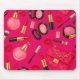 Turn up the glam with this bold hot-pink beauty pattern! This seamless design features a chic quilted handbag with a gold chain and generic clasp, red and pink lipsticks, blush compacts, perfume bottles, makeup brushes, and playful kiss marks — all arranged on a vibrant hot-pink background with a soft sparkle effect.