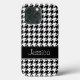 Um teste padrão branco e preto formal do houndstooth é caracterizado nesta capa de telefone. Personalize facilmente com seu nome.