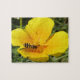 Esta quebra-cabeça espetacular mostra uma fotografia detalhada de uma linda mosca negra e amarela listrada rastejando em um pipoca californiano amarelo à procura de néctar.