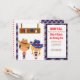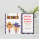 Howdy você! Tendo um partido ou um rodeio. Este convite americano do vaqueiro & da vaqueira é adorável. Tem estrelas pequenas vermelhas abaixo do lado esquerdo e traga o meio. Em um fundo branco há um vaqueiro com um chapéu de vaqueiro tan grande. Está vestindo shorts azuis com estrelas brancas e uma camisa vermelha com uma veste tan. Há uma vaqueira com as caudas trançadas louro do porco. Está vestindo um grande chapéu azul com estrelas brancas e uma banda vermelha. Acima delas são uma suspensão marrom do sinal que diga" o oeste selvagem" em vermelho, branco, e o azul. Na metade direita disto convide é um retângulo branco onde você adicione sua informação personalizada do partido. Em torno da parte externa é uma beira vermelha e azul modelada da xadrez. Verificação para fora todo o design e produtos que restantes nós temos em nossa loja. ©graphico