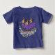 Um desenho animado de três meninas dançando cercadas por um lei floral. Este design está disponível em outra via colorida também. Este desenho original enfeita essas camisetas infantis na frente com um impressão companheiro de um aglomerado de flores atrás. Estas designs vêm em várias cores.