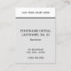 Esse cartão de visita mínimo e humilde design apresenta um nome, um nome de empresa, uma profissão e os detalhes de contato que são personalizáveis. Cartões de visitas como estes podem ser utilizados por um profissional, como um "barrister", um advogado ou um consultor.