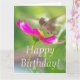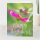 Um querido pequeno Pássaro Hummingbird e uma flor quente rosa Cosmos Daisy Flower estão neste Feliz Aniversário Grande Cartão Saudação.
