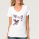 Esta é uma T-Shirt de Hummingbird Única "Um dos Tipos" das Mulheres. Ele apresenta um néctar coágulo de beija-flor colorido das lindas flores roxas e rosa na frente... e flores roxas e cor-de-rosa nas costas! Pintura de arte original do artista Kerry Miller.