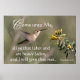 Um beija-flor chegando a uma flor nesta Venha até Jesus Poster cristão/Impressão.