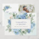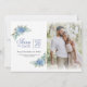 Anuncie seu grande dia em estilo com nossa Hydrangea Azul SINI Salve a Data com Cartão com fotos. Apresentando elegantes drangeas de aquarela e espaço para sua foto favorita, esta design é a maneira perfeita de compartilhar a alegria e marcar seu calendário com amor