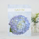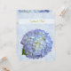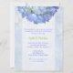 Convites de renovação de voto de hydrangea azul. O design de texto modelo é decorado com flores azuis claras de hydrangea, na frente e no verso. Adicione nomes à frente e todas as informações de celebração à parte traseira. O texto azul é desativado com ouro para os nomes. Placas maiores de 6 x 9 polegadas mostradas no reciclado (você pode mudar) e vêm com envelopes brancos.