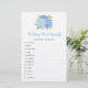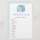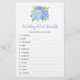 Este jogo de chá de panela é um jogo de palavras de casamento com 12 palavras para desembaralhar. Apresenta um design floral azul de hidrocasta azul. Personalize o texto no verso com o nome da noiva. Fornecimentos correspondentes de chá de panela disponíveis.
