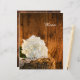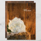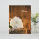 Personalize o encantador White Hydrangea e o Menu Casamento do País da Madeira do Celeiro com os detalhes da refeição que você servirá no seu chá de panela do estilo verão ou outono, poste o brunch de casamento ou o janto de recepção de casamentos, adicionando a salada ou o primeiro curso, a entrada ou o segundo curso e a sobremesa ou o terceiro curso. Este cardápio nupcial personalizado rústico apresenta uma fotografia floral de uma flor branca de hydrangea florssom e um lenço vintage aparado de linen num fardo de feno com um fundo de madeira marrom e curvada.