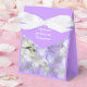 Caixa de presentes de flores bonito e roxas com fita e arco. Adicione texto personalizado em script branco para dizer que o obrigado para as damas de honra / madrinha de casamento. cobrir lavanda florais de design na frente e atrás. A cor da fita é personalizável.