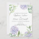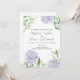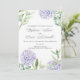 Um belo convite para o casamento de buquês florais, azul e roxo.