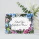 Escreva uma mensagem calorosa de agradecimento e apreço pelos presentes recebidos após uma festa de noivado, chá de panela ou casamento do tema da festa do jardim de classe com o bonito Casamento de Quadros da Flor Hydrangea. Este elegante costume botânico, graças a você, nota uma fotografia floral pintada digitalmente de flores coloridas cor-de-rosa, azul e branco de hydrangea com folhas verdes.