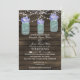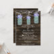 Rustic Barnwood, luzes de cordas balançando com hidrangea púrpura azulada em convites para casamento de Mason jar. Produtos correspondentes também disponíveis.