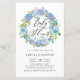 Convide convidados para o seu evento com este convite de chá de fraldas personalizável. Apresenta uma bela coroa floral de drangeas e rosas azuis. Personalize este convite floral adicionando seus detalhes. Este convite de chá de fraldas de hydrangea é perfeito para chás de fraldas de primavera e inverno. Itens correspondentes estão disponíveis.