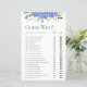Esta folha de jogo de chuveiro Guess Who? trará muita diversão e risadas para o seu chá de casamento! Desafia os convidados a adivinhar se a noiva ou o noivo fez algo primeiro em seu relacionamento. A página é elegante e encantadora. Seu belo design com hortênsias azuis multicoloridas, delicados tufos de folhagem natural em estilo aquarela contemporâneo e listras verdes coordenadas no verso é perfeito para qualquer casamento boho, rústico, botânico, floral, jardim, romântico, vintage ou formal. É um jogo perfeito para qualquer tipo de chá de noiva/casal.