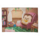 Um ouriço confortável reclina numa cadeira confortável com um livro nesta ilustração acrílica de Lydia Holloway.
