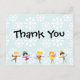 Crianças patinando gelo e flocos de neve brancos em azul com texto que lê Obrigado na frente e tem uma área para personalizar com uma mensagem pessoal no verso, combina com nossos convites de festas de aniversários de patinação no gelo!