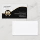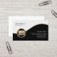 Este cartão de visita do fotógrafo apresenta segmentos em preto e branco separados por uma fita de ouro ondulada. Um elegante ícone de ouro de uma câmera está no lado inferior esquerdo da design, que é geralmente adequado para negócios ou profissões relacionadas a fotografia, câmera, visual, entretenimento, imagens digitais, temas de artes criativas.