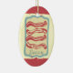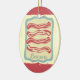 Retrai o cozinhar do café da manhã ou série de panificação Os enfeites da árvore de Natal para decoração saborosa! Este é um bacon delicioso, com 4 tiras sobre um fundo decorativo vermelho e azul.