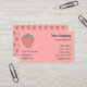 Ilustração de um morango. Cor de fundo personalizada. Muitos campos de texto personalizáveis. Um padrão constante e identificação social no verso.