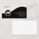 Esse cartão de visita de transporte apresenta segmentos preto e branco separados por uma fita de ouro ondulada. Um elegante ícone de ouro de um caminhão está no lado inferior esquerdo da design, que é geralmente adequado para negócios ou profissões relacionadas a transportes, transporte, transporte, carga, caminhão, caminhão, carro, automóvel, mecânico, reparo de carros.