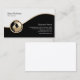 Este cartão de visita de cabeleireiro apresenta segmentos pretos e brancos separados por uma fita de ouro ondulada. Um elegante ícone de ouro de um estilo de moda capilar está no lado inferior esquerdo da design, que é geralmente adequado para moda, estilo, beleza, senhoras, mulheres, elegantes, maquiagem, temas cosméticos.