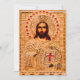 Jesus Cristo em metal dourado decorado com pedras vermelhas. Segurando um livro com cruz vermelha. Feche a fotografia.