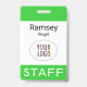 Personalize facilmente nosso crachá de nome de ID de funcionarios com o logotipo da sua empresa, o nome do funcionário ou outro texto personalizado. É plástico pvc e disponível com um jardim, clipe ou um rolo retrátil. Projetado em verde limão* e outras cores com uma design minimalista moderna pela MISOOK. Todas as cores são personalizáveis. Nenhuma quantidade mínima de ordem e nenhuma taxa de configuração. *Esta cor pode parecer mais vívida na tela do que no impressão.