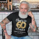 Trendy black and gold sexagésima camiseta de aniversário com sessenta balões de hélio de ouro, o ditado "aplaude 60 anos", "envelhecido até à perfeição" e a data.