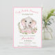 Convite não apenas para primeiro aniversario com elefante e flores cor-de-rosa de sakura para primeiro aniversario de menina. Modelo totalmente editável, personalize facilmente o texto. - Kate Eden Art