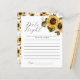 Tema floral russo bridal/cartões noturnos de data de chá de casamento com ilustração aquosa de girassóis amarelos com hálito de bebê. Peça aos hóspedes para preencherem este cartão durante o chá. Será um bom excelente!