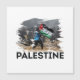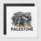 A design da "Palestina" combina uma imagem real que expressa a luta palestina com um poderoso impacto visual em um estilo rasgado que reflete a resiliência e o desafio. O design é uma mensagem visual que incorpora força.