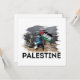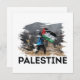 A design da "Palestina" combina uma imagem real que expressa a luta palestina com um poderoso impacto visual em um estilo rasgado que reflete a resiliência e o desafio. O design é uma mensagem visual que incorpora força.