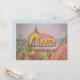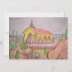 Um desenho a lápis de aquarela e pintura da Capela Alto Vista em Aruba com Mar Caribe e vários cactos, rochas e arbustos espinhosos.