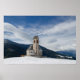 Poster da igreja católica romana de Ruas. Jakob (San Giacomo) em Villnösstal ou Val di Funes, no vale de Dolomites, Itália, na neve do inverno.