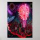 Dia do ano novo, numa cidade numa ilha no oceano com um monte de fogos coloridos. Esta é uma arte gerada por IA.