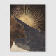 Um cartão de saudação abstrato mesmerizante que toca com a percepção, apresentando um perfil de ouro do rosto da mulher se misturando perfeitamente em texturas ricas como mármore. Dependendo do telespectador, o trabalho de arte também pode aparecer como uma formação de rocha monumental, criando uma ilusão ótica impressionante. Um sol radiante de ouro com raios brilhantes domina o fundo, adicionando calor, mistério e energia celestial à composição. Com sua mistura de padrões naturais de pedra e sotaques metálicos luxuosos, esta peça incorpora elegância moderna, mística cósmica e sofisticação do eterno.