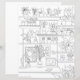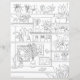 Plantas florais modernas, pretas e brancas, decoram o espaço de trabalho com flores e folhas, ilustração perfeita que você pode usar como página colorida de um lado.