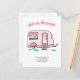 Ilustração de anúncio de mudança de van camper pastel com casa desenhada à mão caprichosa, com cores rosa, turquesa, janelas e plantas de cacto.