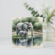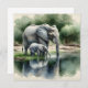 Cartão de vazio elefante. Uma doce ilustração do estilo aquarela de um elefante mama e seu bebendo bebê de uma lagoa com uma relação fofa.