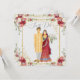 Uma design de divertida e bela de um casal de casamento ilustrado ao estilo de Bollywood rodeado de flores elegantes e quadros de ouro, inclui a personalização.