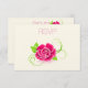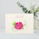 Um cartão de rsvp elegante e chic. Uma simples ilustração de uma rosa rosa com pétalas verdes e um caule suave.