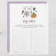 Há um bebê doce a caminho, então é hora de alguns jogos de Chá de fraldas! Aqui, o jogo Baby ABCs tem os convidados listando quantos itens de bebês que começam com as letras do alfabeto em três minutos. A design apresenta ilustrações desenhadas à mão de ícones clássicos do Dia das Bruxas, como abóboras, bruxas, fantasmas e doces! Arte original e design por Annie Montgomery Design.