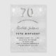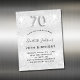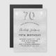 Um ímã de convite moderno, na moda e glamouroso para uma festa de aniversário 70. Um fundo com aparência de prata falsa, decorado com poeira brilhante. Personalize e adicione o seu nome e detalhes da festa. O número 70 é escrito com uma fonte de estilo de balão, script.