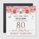 Brilho feminino, fundo rosa milenar, com tipografia de nome em letra cursiva sofisticada. Modelo de design feliz 80 e aniversário fabuloso. Rosas rosas e borda superior de borboleta. Ótimo para celebrações de 80 anos. Lembrete de celebração de data a salvar.