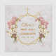 Este moderno e elegante ímã de primeira comunhão floral tem uma moldura geométrica irregular dourada com buquês de orquídeas brancas e rosadas nos lados esquerdo e direito sobre dois hexágonos dourados que se sobrepõem a um fundo de mármore branco, com uma cruz dourada no topo. O nome da criança é escrito em uma fonte caligráfica elegante; o restante é escrito em letras maiúsculas menores. Todo o texto tem uma cor amarela dourada, como a moldura dourada.