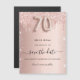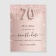 Uma cinta e uma moda Salve a placa Date para uma festa de aniversário 70. fundo rosa de gradiente dourado decorado com ouro rosa e brilho prateado falso e poeira. Personalize e adicione uma data e um nome/texto. O texto: Salvar a Data é gravado com um script de estilo com letra de tendência grande com alternâncias. Número 70 com uma fonte no estilo do balão.